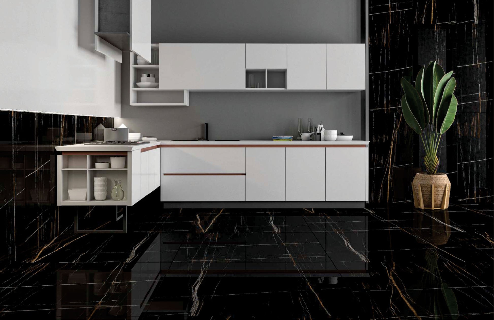 Carrelage sol / mur effet marbre ELEGANCE BLACK l.60 x L.120 cm Brillant LIMCARO
